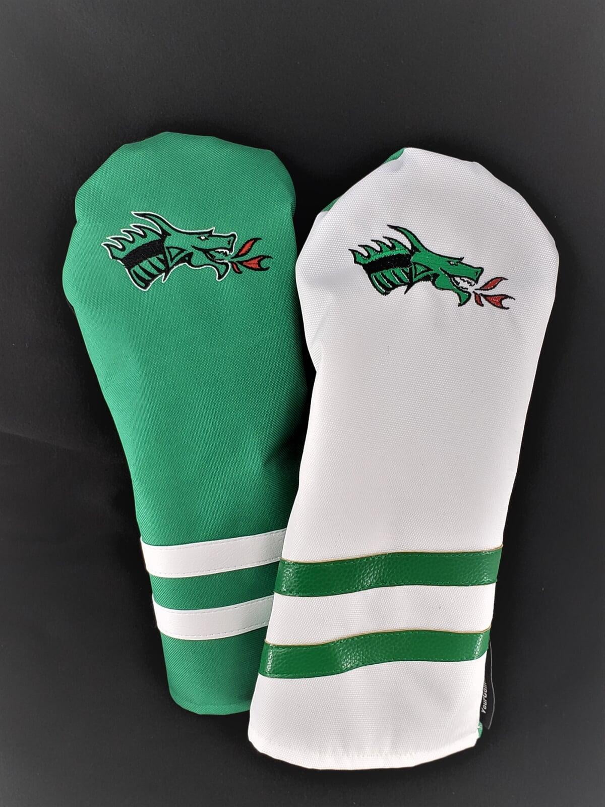 If your school has multiple varsity teams or you want to differentiate JV and varsity -- e.g. say a "Green" squad and "White" squad -- consider making each team's headcovers in their squad name color with stripes in the other as seen below.